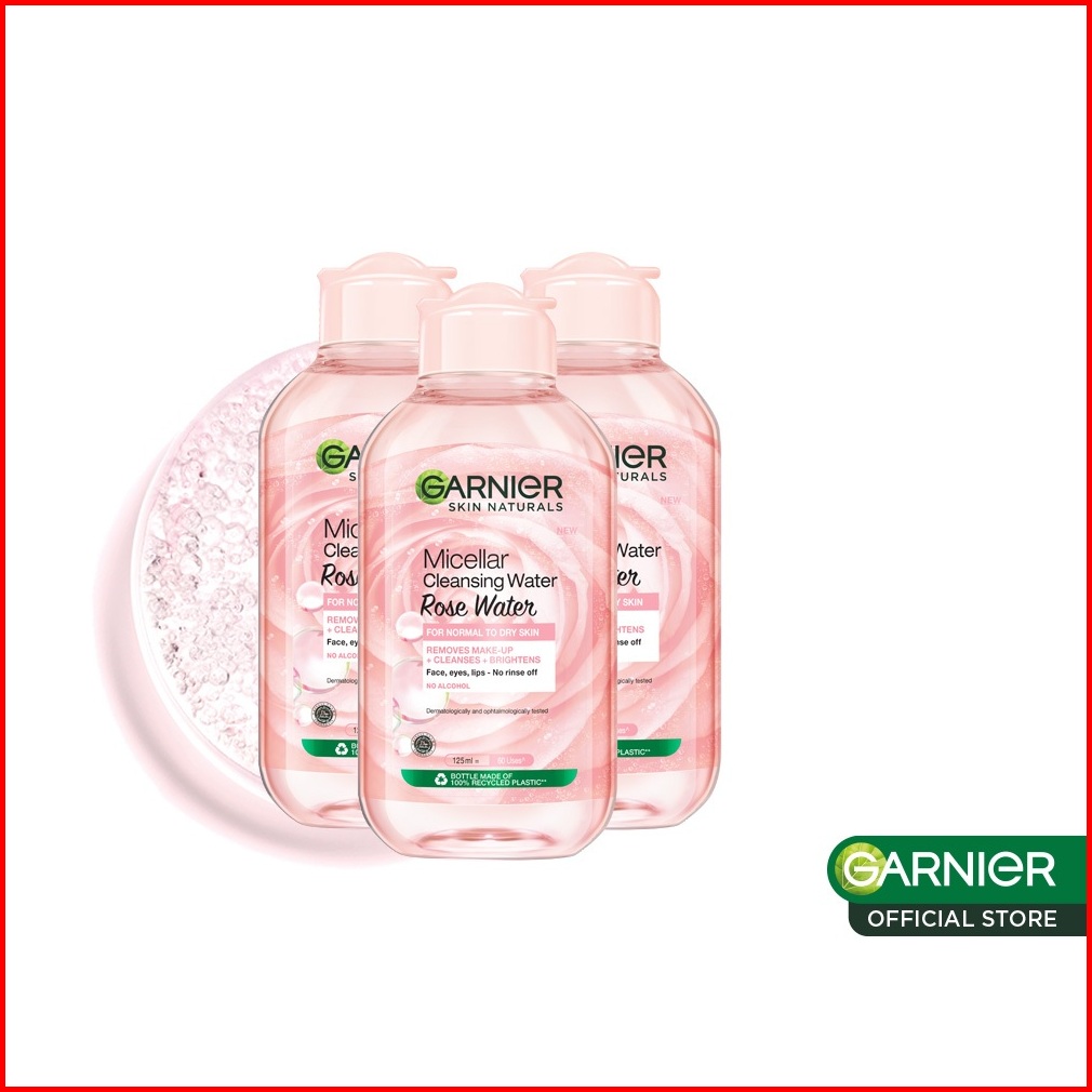 Paket Hemat Isi 3 Garnier Micellar Cleansing Rose Water Skin Care - 125ml Pembersih Wajah Make Up Mengandung Air Mawar U
