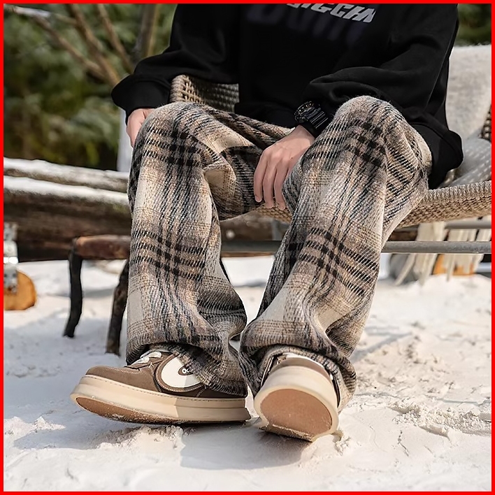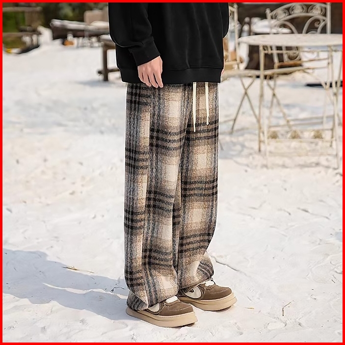 Celana Kotak-kotak Celana Plaid Jumbo Size Pinggang Celana Elastis Nyaman Gaya Trendy Kekinian Untuk Ootd Casual