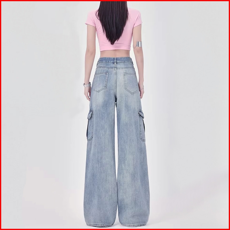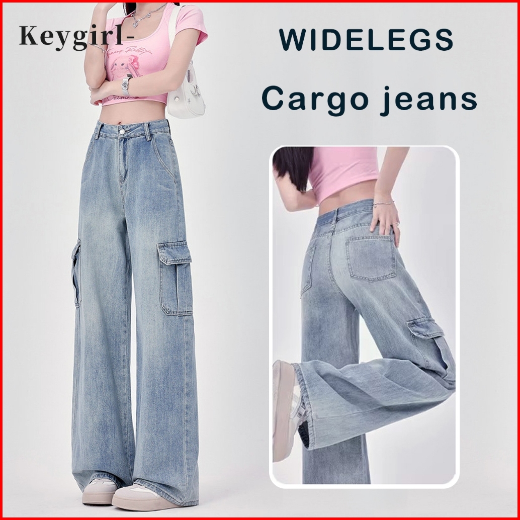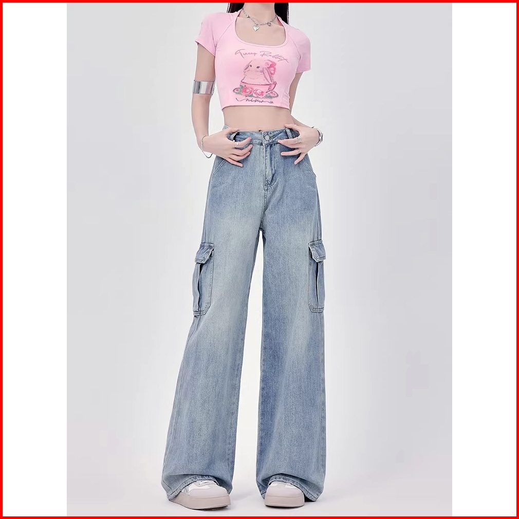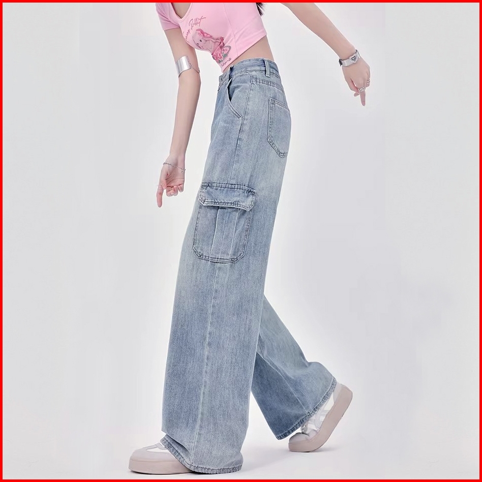 Celana Cargo Jeans Wanita Wide Leg Gaya Trendy Oversize Nyaman Elegan Untuk Ootd Casual Sehari-hari