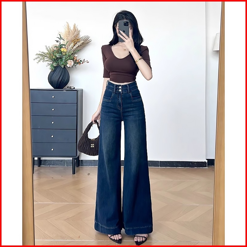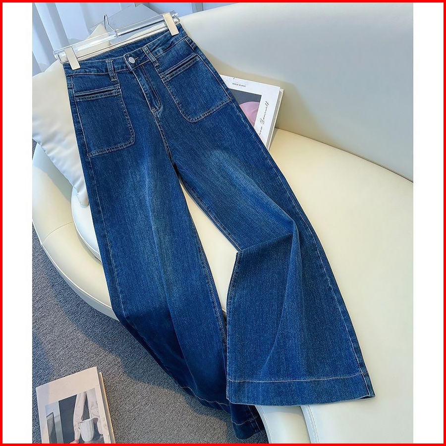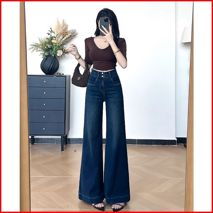 Biru Tua Highwaist Loose Baggy Jeans Wanita Jumbo Size Premium