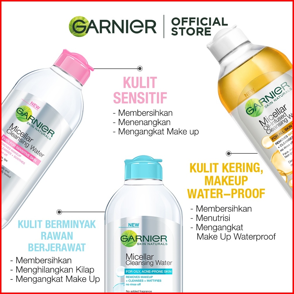 Garnier Micellar Water Pink Oil Infused- 400 Ml Twinpack - Pembersih Wajah Makeup Kulit Sensitif Gentle Cleanser No Rins