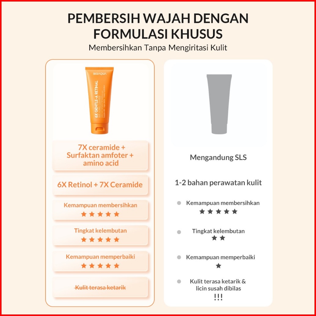 Bioaqua 6x Gentle-a Retinol Amino Facial Wash Anti Aging Low Ph Gentle Cleanser 100g Brightening Sabun Cuci Muka Members