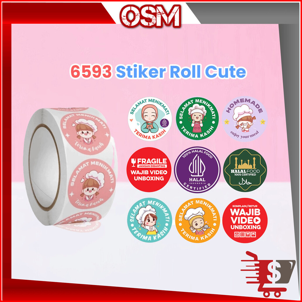 Osm - 6593 500 Pcs Stiker Selamat Menikmati Sticker Bulat Roll Makanan Kue Terima Kasih Tempelan Jualan Makanan 500 Pcs