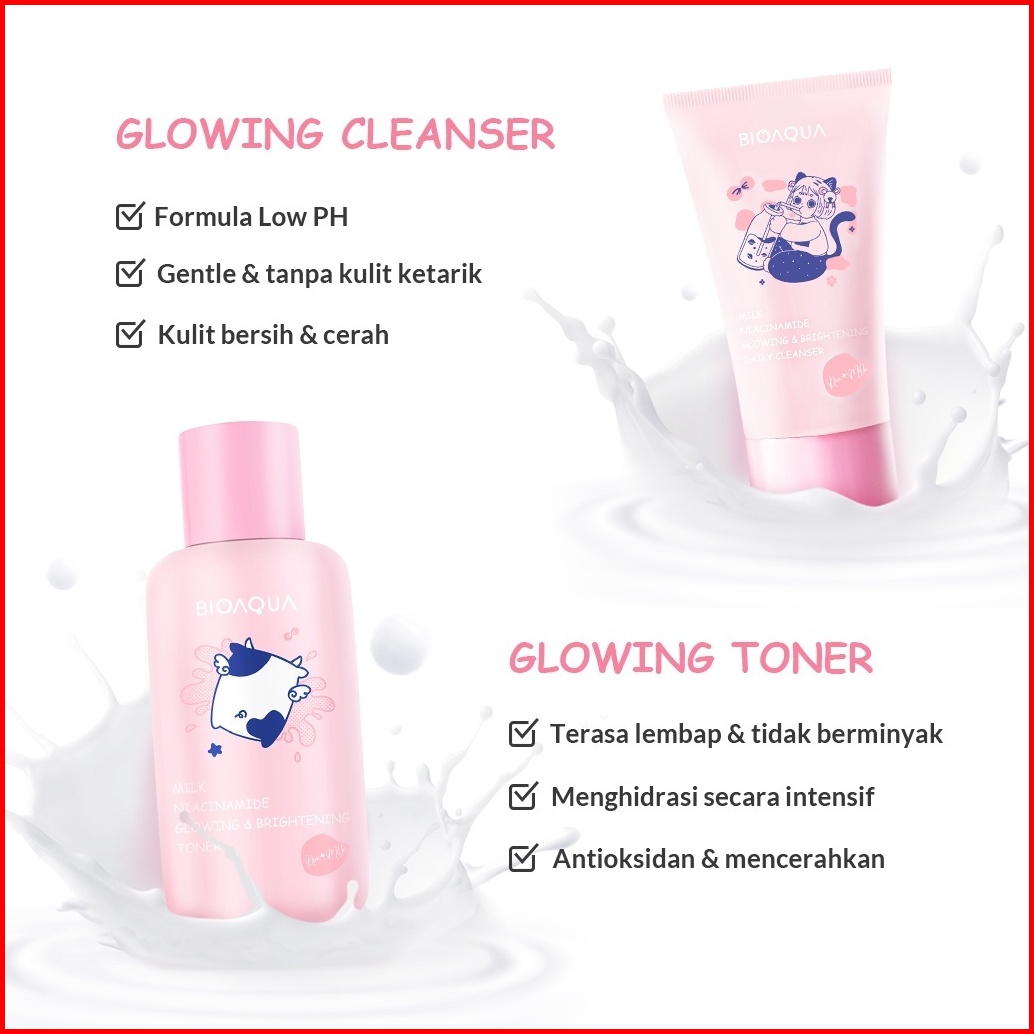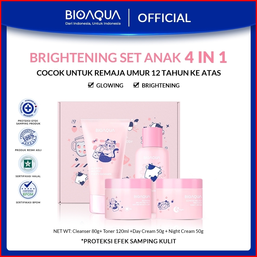 Bioaqua Skincare Set Anak Paket 4pcs With Cleanser 80g Toner 120ml Sunscreen 50g Night Cream 50g Milk Niacinamide Glowin