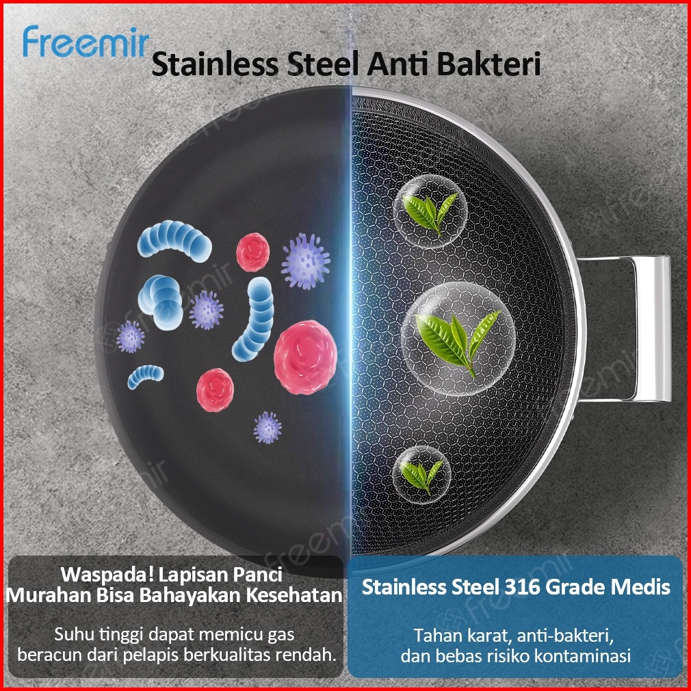 Freemir Lifestyle Wajan Honeycomb Sarang Lebah Sus 316 Panci Anti Lengket Anti Karat Sehat Premium Panci Serbaguna Cocok
