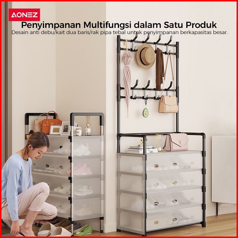 Aonez Rak Sepatu Tertutup Anti Debu Serbaguna Gantungan Tas Pakaian Rak Penyimpanan Dengan Penutup Penyimpanan Gantung