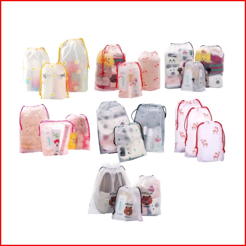 Travel Pouch Organizer Serbaguna Tas Serut Kosmetik Motif Anti Air Murah Meriah