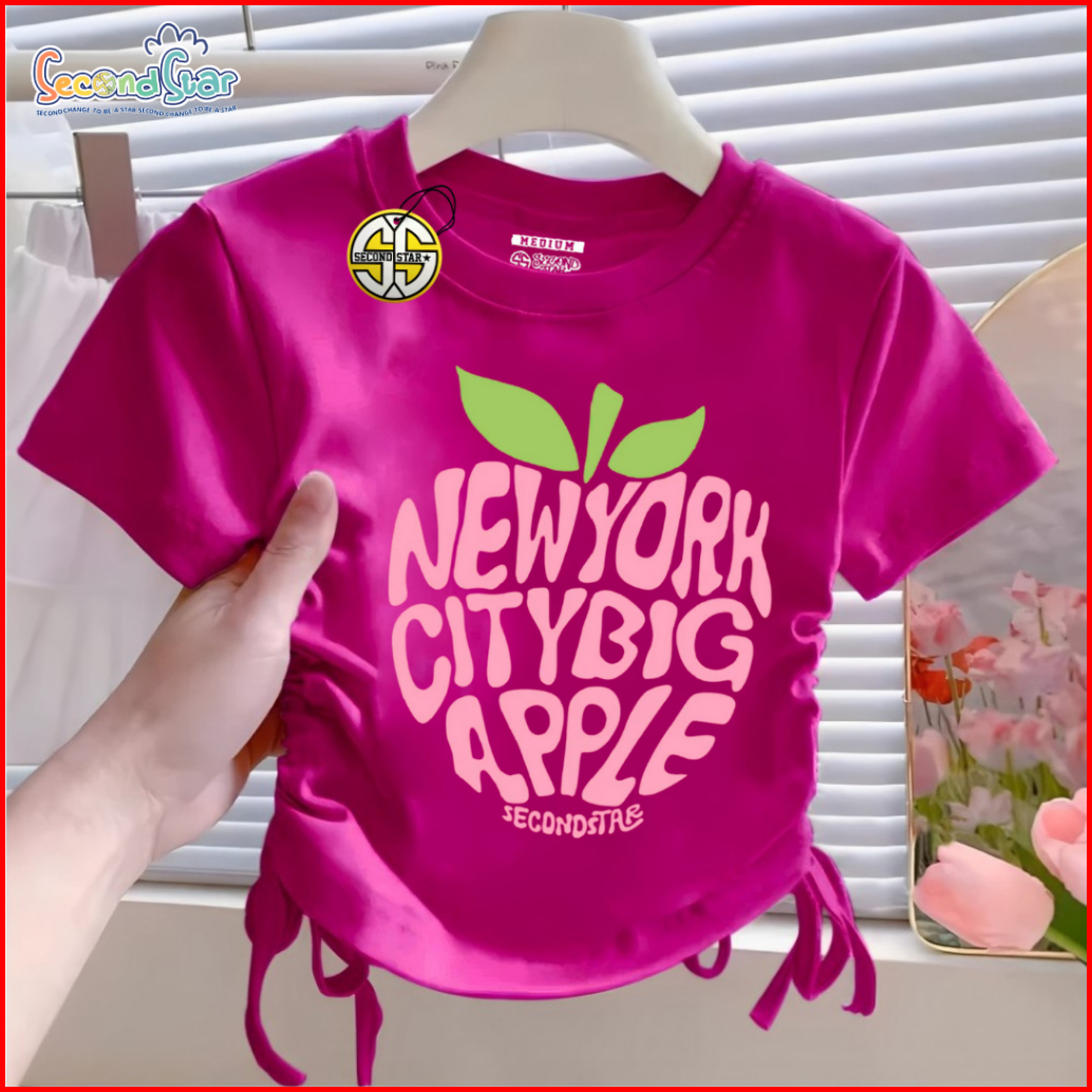 Second Star Kaos Kerut Croptop Variasi Unik Serut Tali Anak Perempuan 1-12 Tahun Bahan Katun - Ssb33
