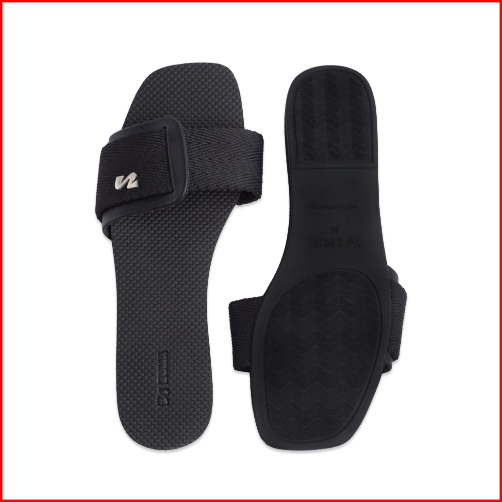 Zuma Women Merci 1 Black Sandal Slop Wanita Karet Slip On Polos Hitam