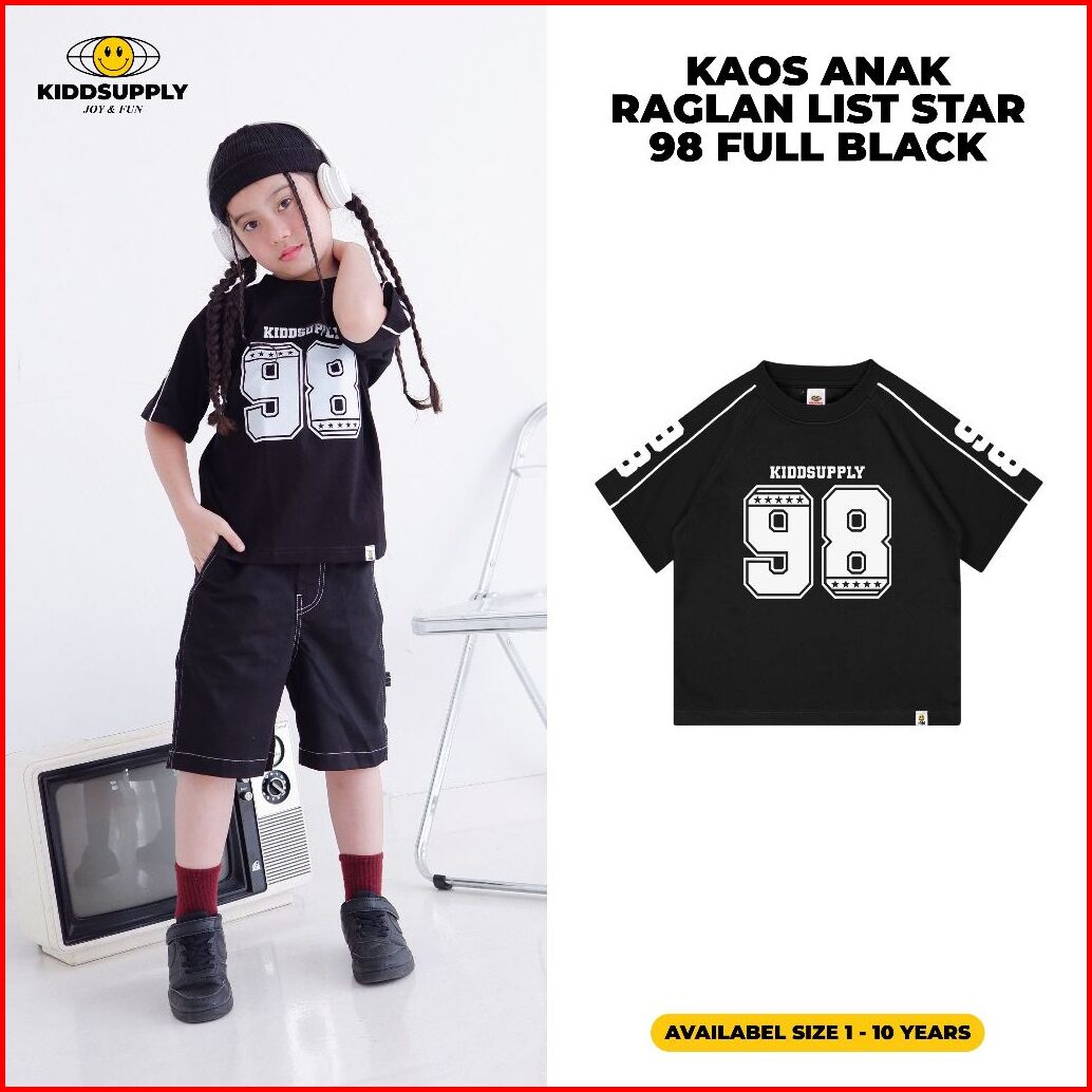 Kiddsupply Kaos Anak Raglan List Star 98 Full Black Tshirt Anak I Kaos Raglan Anak Kd-ts-rglv2003
