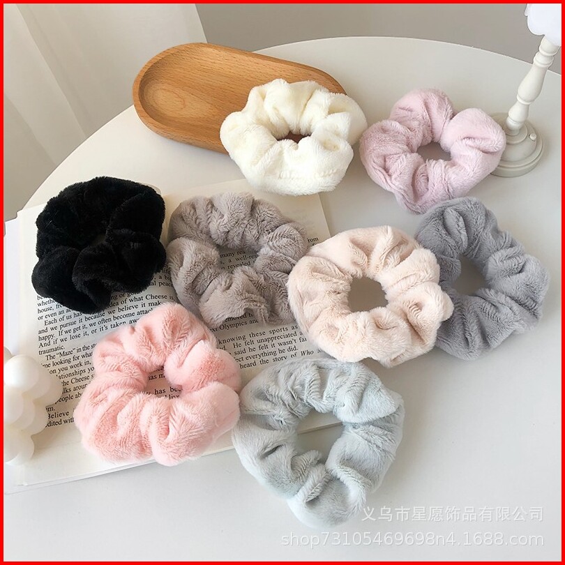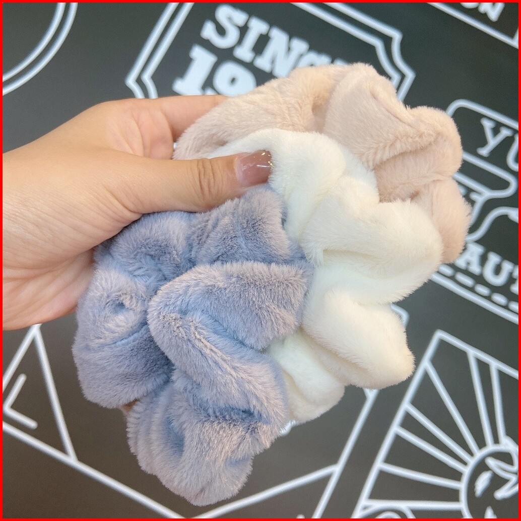 27hh Ikat Rambut Korea Scrunchie Kain Bulu Lembut Polos