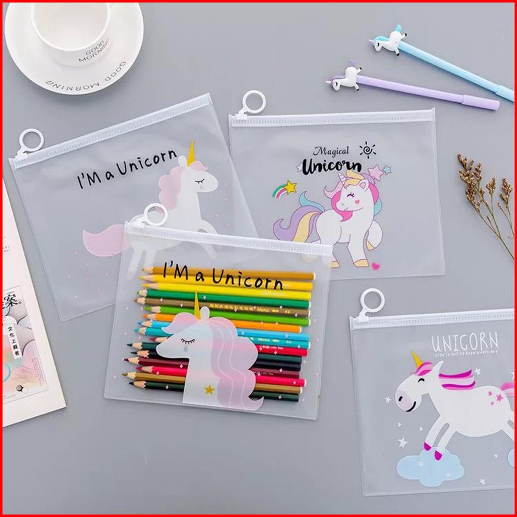 Gogoland R079 Tempat Pensil Tas Pounch Kosmetik Transparan Pencil Motif Karakter Unicorn Impor