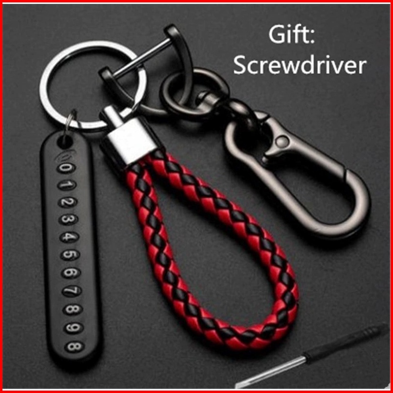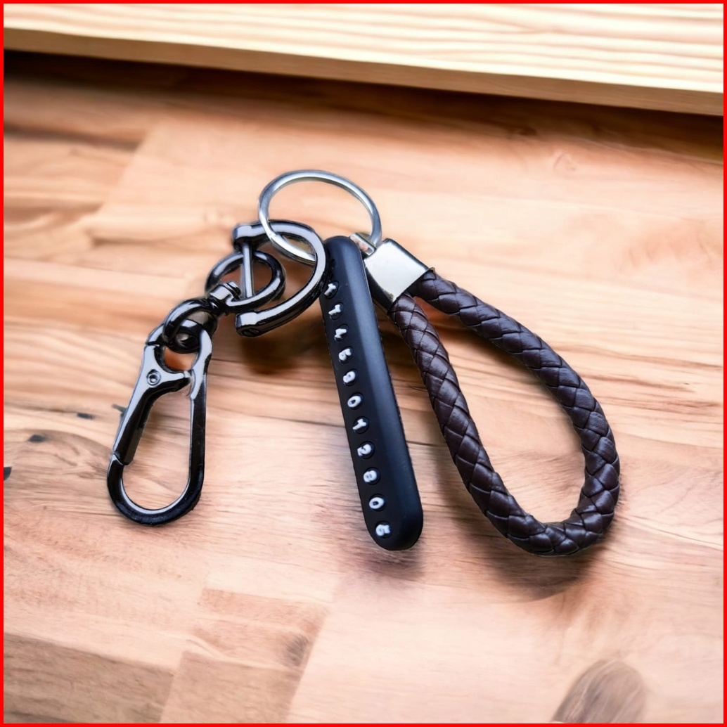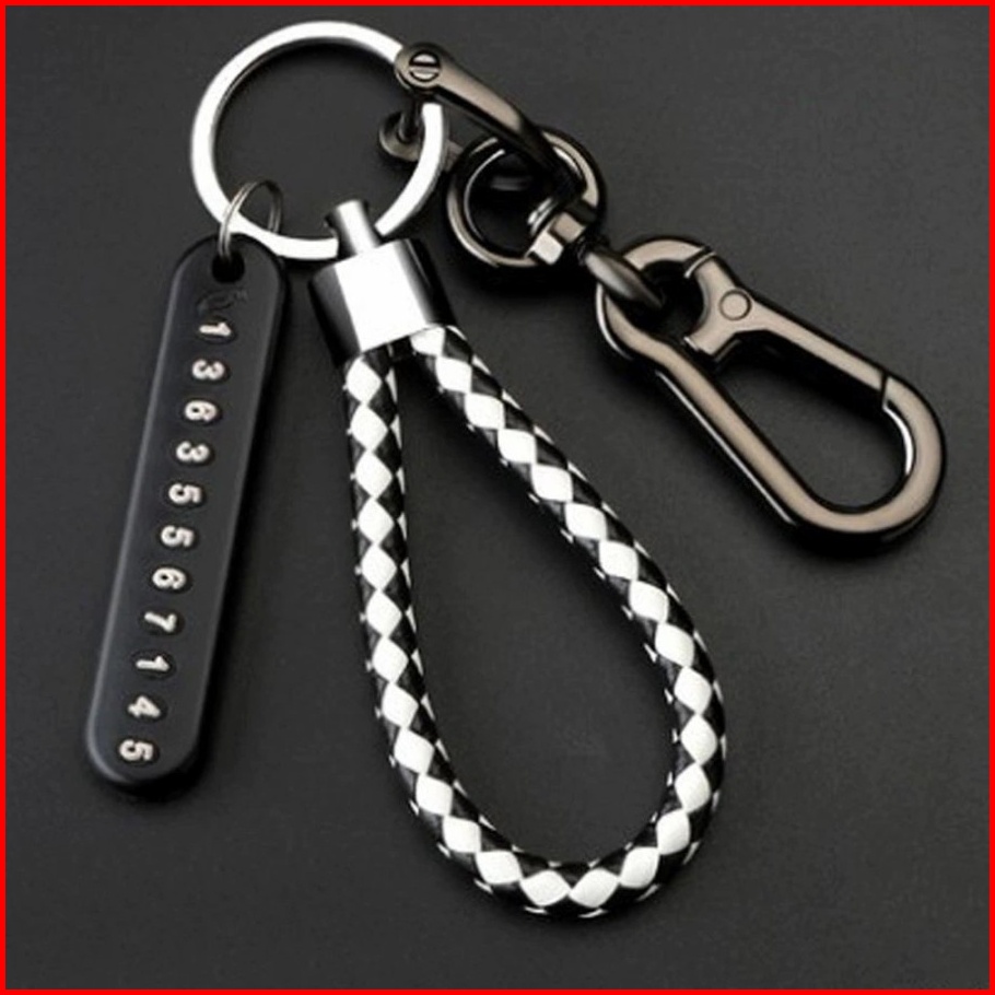 Tali Car Keychain Set Gantungan Kunci Mobil Motor Buckle Dengan Tag No Hp Nomor Handphone