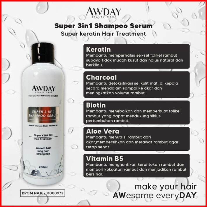 Jauhare05 Awday Super Keratin 3in1 Shampoo Serum 250ml Awday Beauty Care