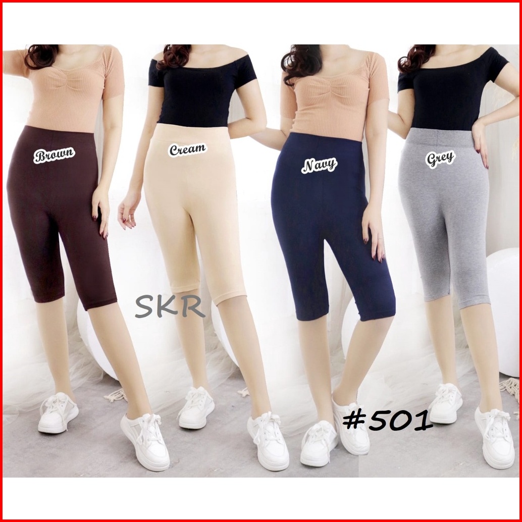 Legging Highwaist Selutut Bahan Kaos Leging Polos 5per6 Lejing Wanita