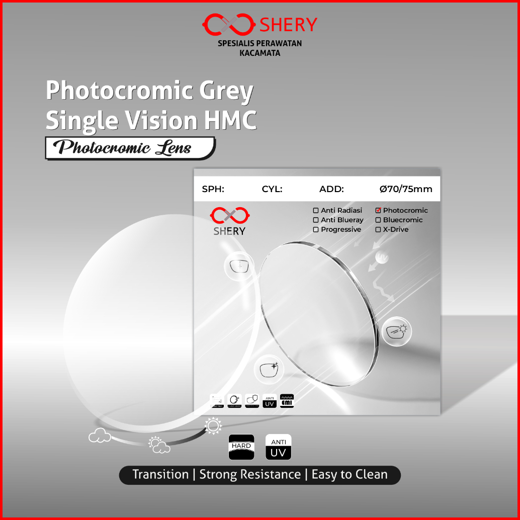 Lensa Kacamata Sheryacc 1.56 1.61 Photocromic Grey Minus Cyl Plus L003