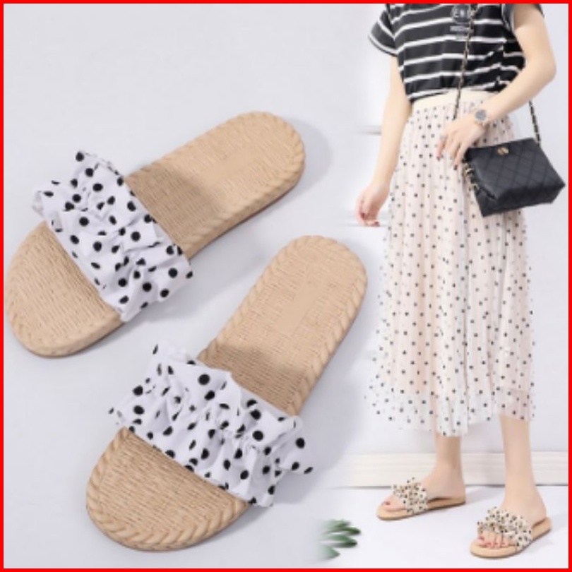 Sandal Kokop Wanita Press Kerut Polkadot Sm10