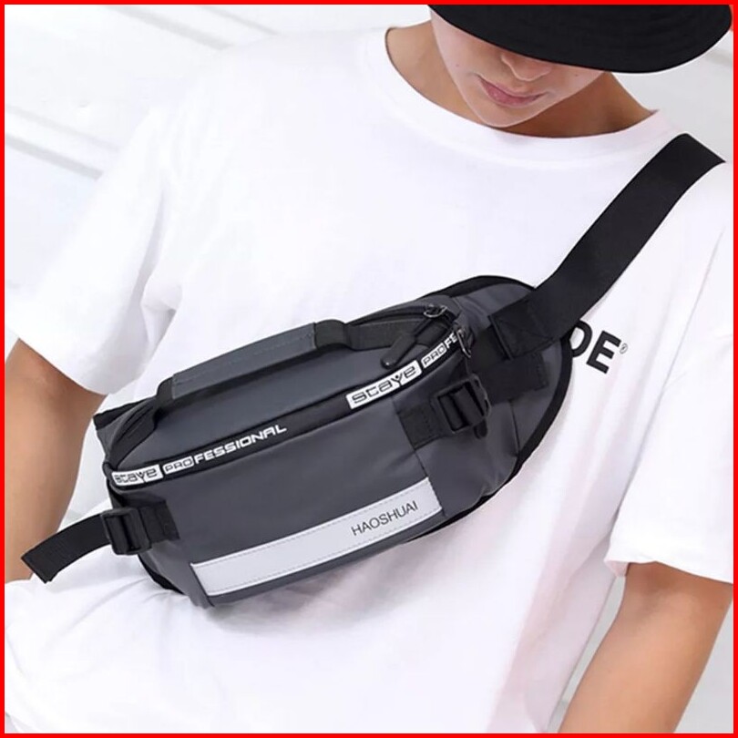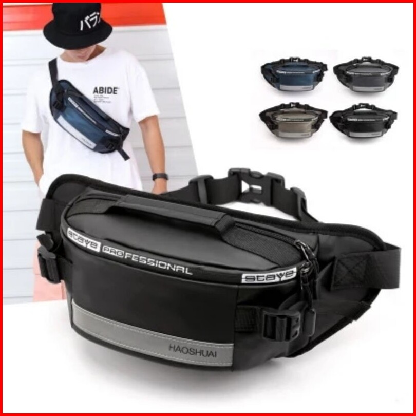 Waistbag - Trm Waterproof Sport 1ax802 Hitam Bisa Muat Banyak Y18 Pria Wanita Selempang Pinggang