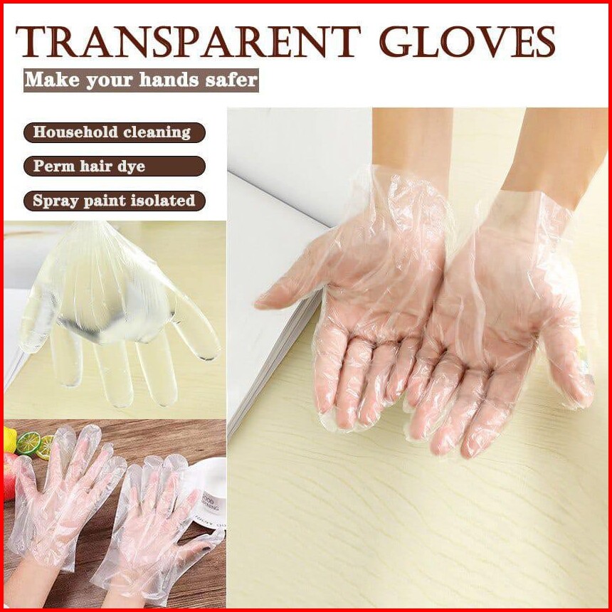 Pa Sarung Tangan Plastik Isi 100pcs Disposable Plastic Gloves Sekali Pakai Bening Polos Transparent Pr031
