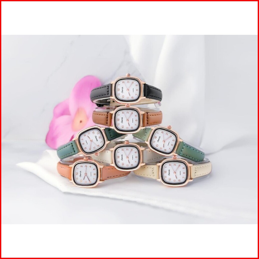 Pa Jam Tangan Wanita Pria Couple Polos Casual Dial Segi Fashion Analog Quartz Simple Strap Kulit Pu Leather Rm157