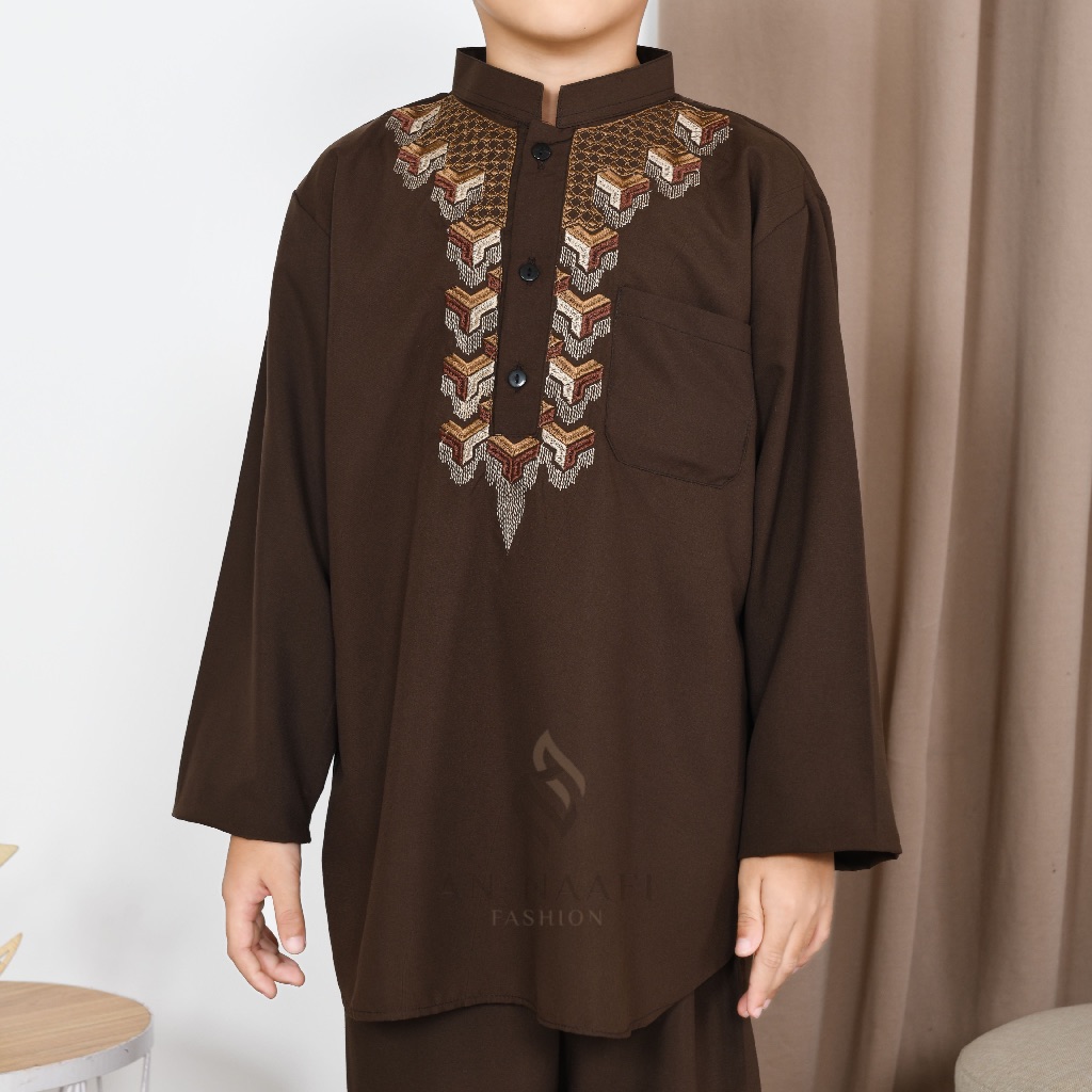 Setelan Koko Anak Laki-laki Lengan Panjang Warna cokelat Full Bordir Usia 4-12 Tahun Terbaru