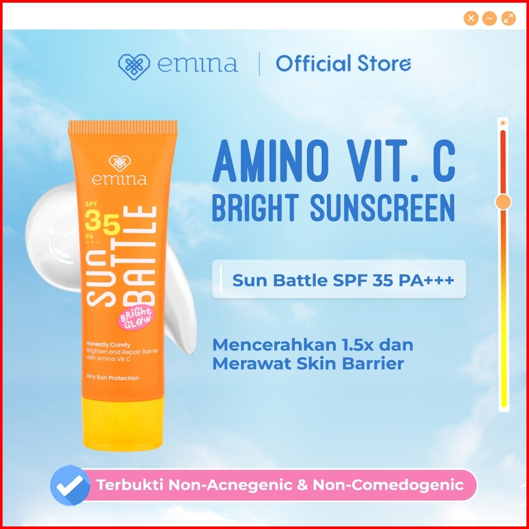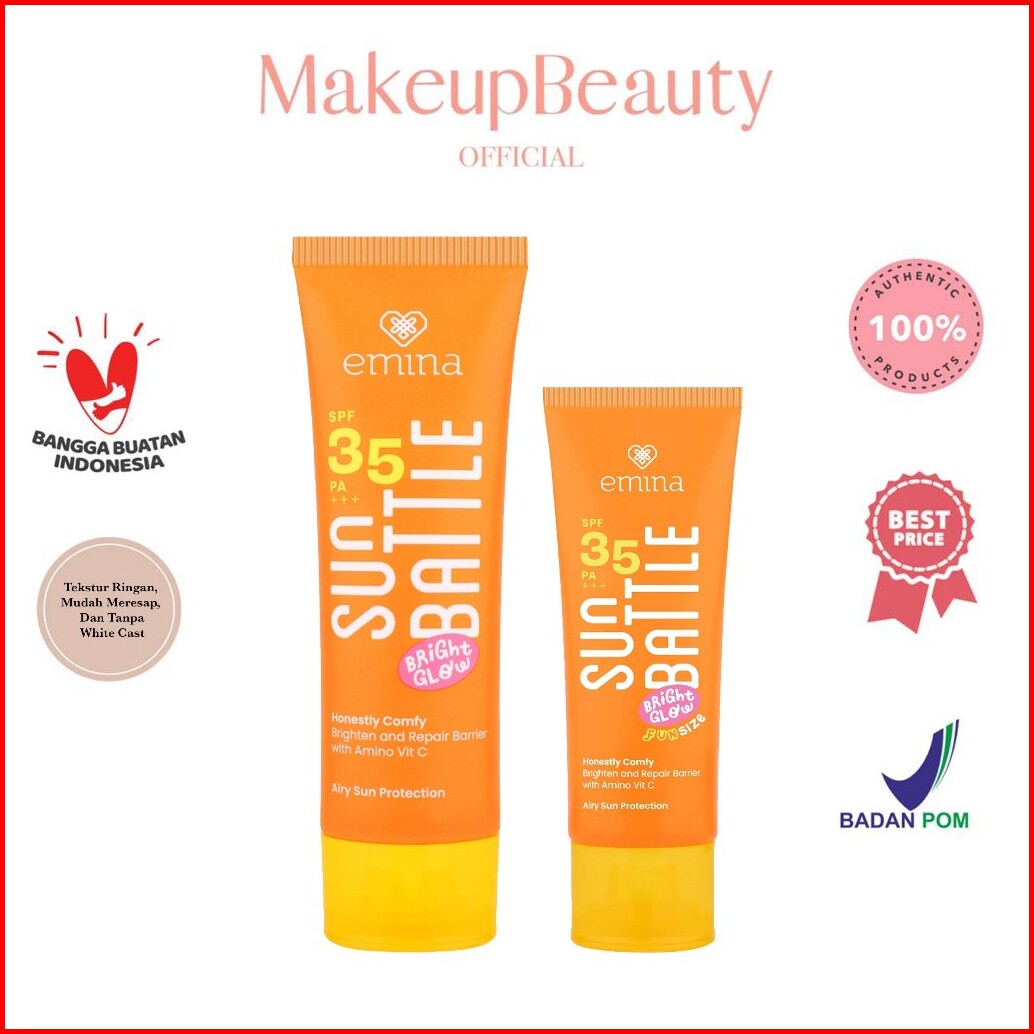 Emina Sun Battle Bright Glow Spf 35 Pa - Sunscreen Serum Amino Vitamin C - Cerah Ringan Hydrating