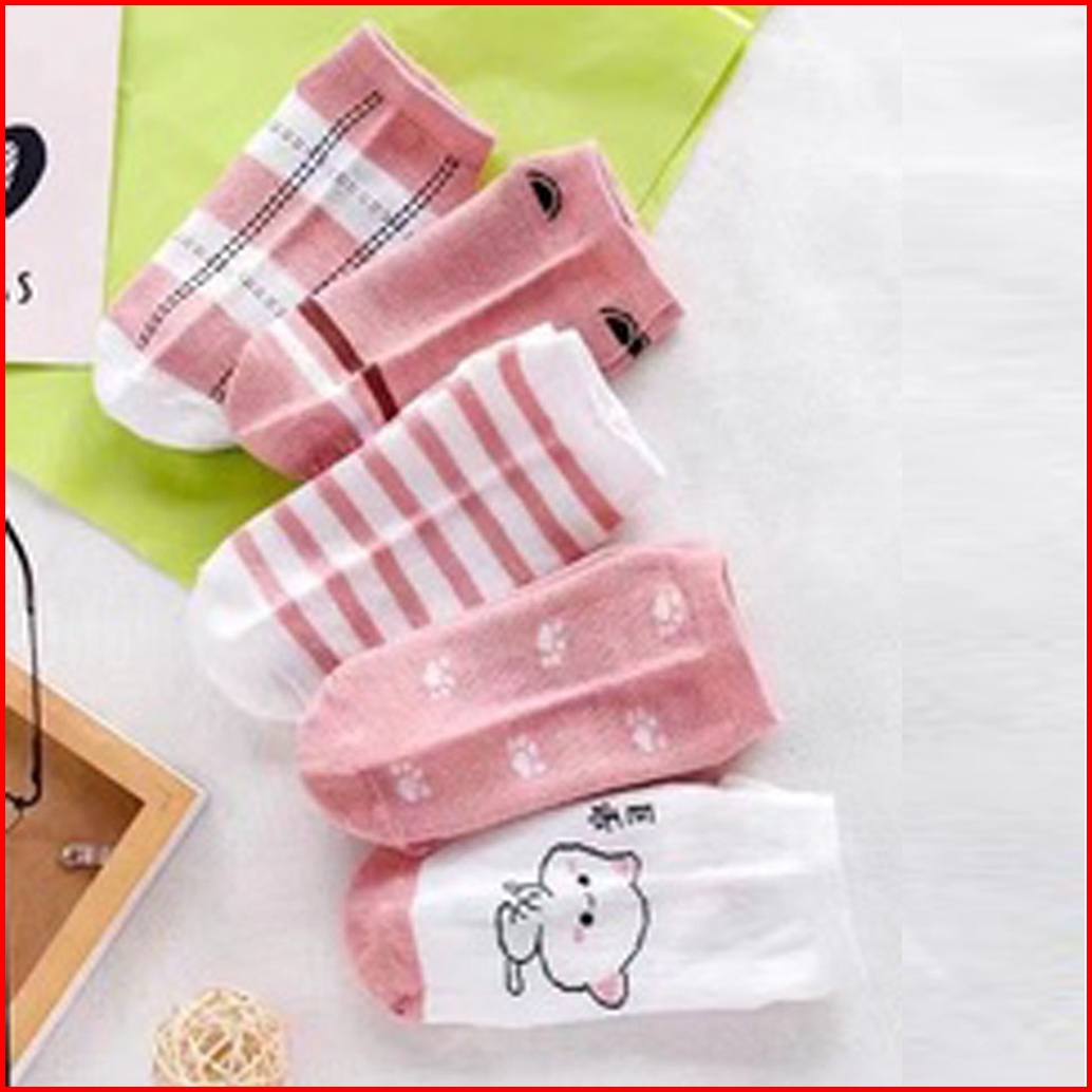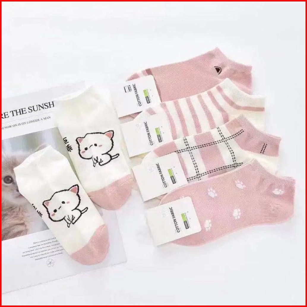 Tmall Kaos Kaki Wanita Motif Pink Cat Kucing Meow Fashion Korea Women Sock Import Murah Kk012