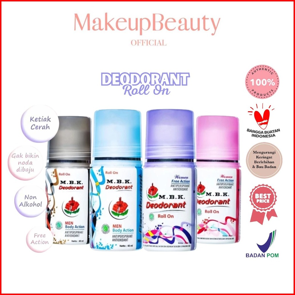 Mbk Deodorant Roll On Pria Wanita 40 Ml - Penghilang Bau Badan Keringat M.b.k