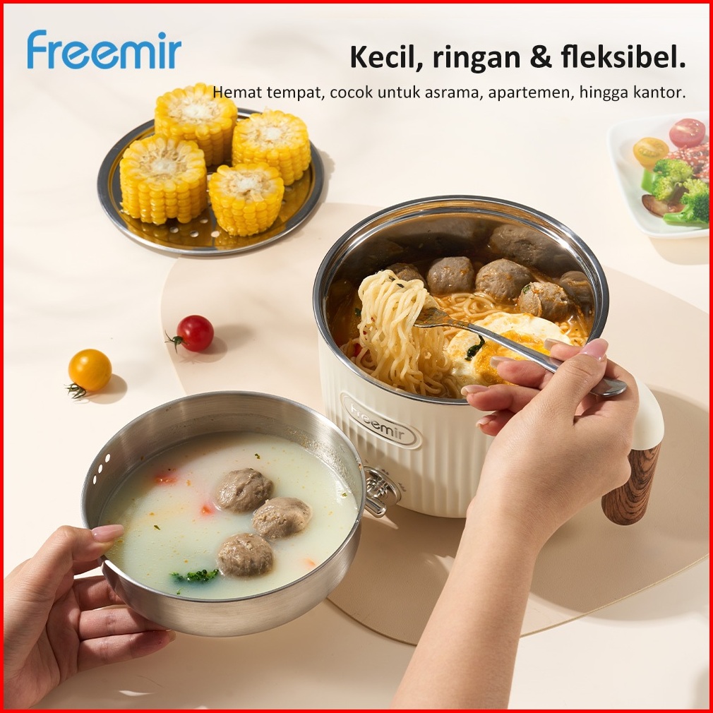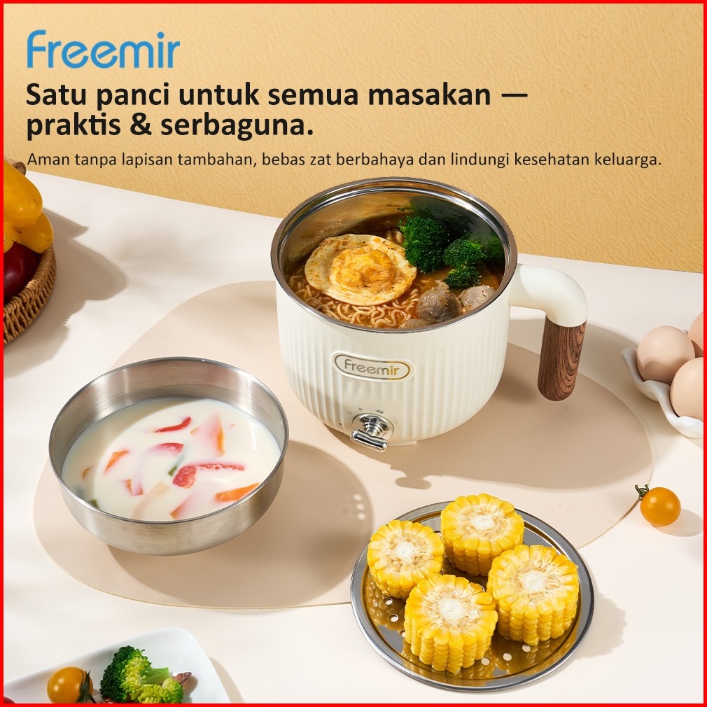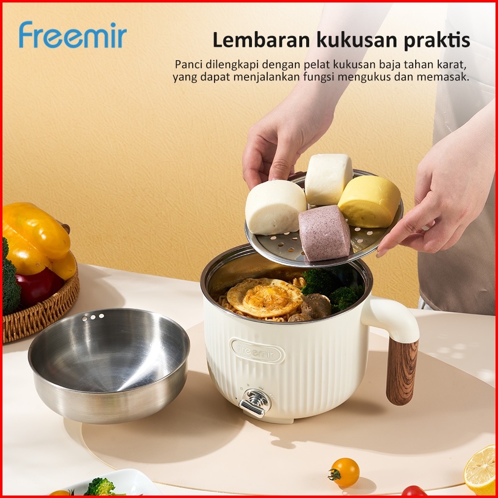 Free Gift Freemir Lifestyle Panci Listrik Mini Electric Cooker White 1.6l Anti Lengket Sus 304 Aman Panci Panas Pengukus