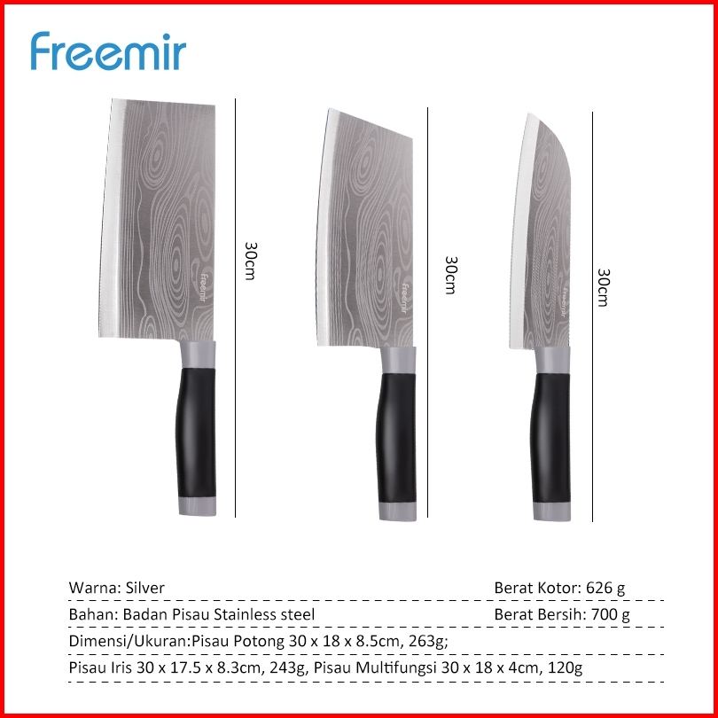 Freemir Pisau Set 3pcs Pisau Daging Pisau Sayur Pisau Serbaguna Anti Karatpisau Buah Dan Pisau Dapur Dapat Digunakan Unt