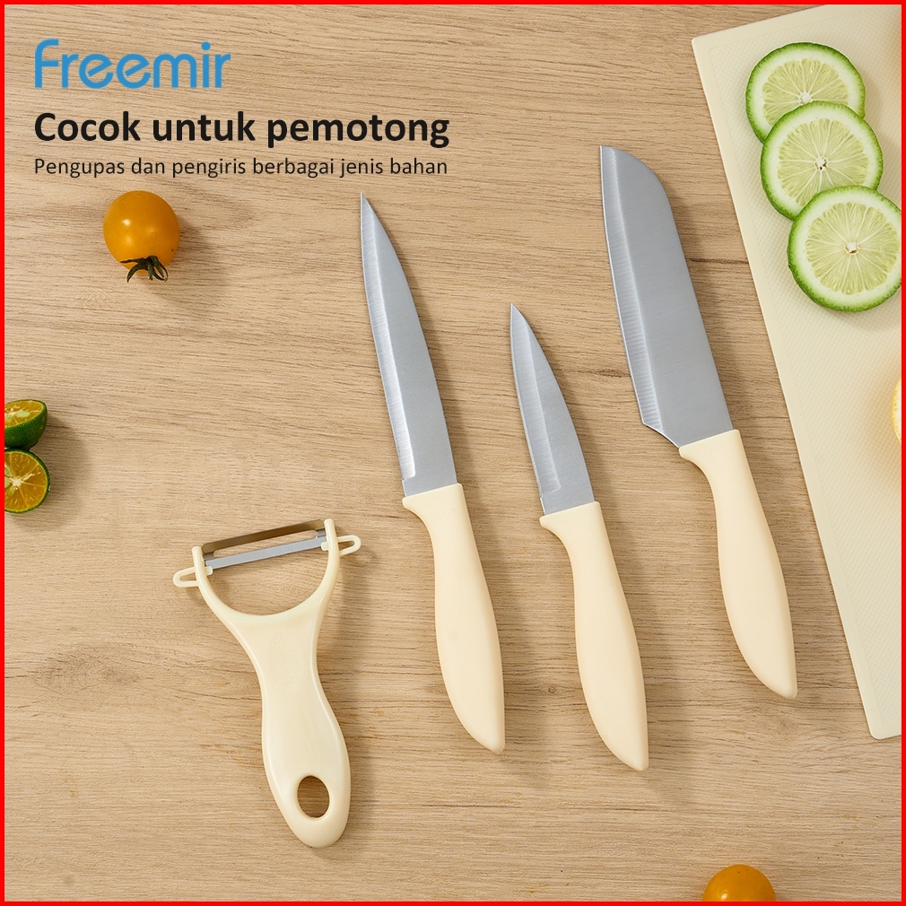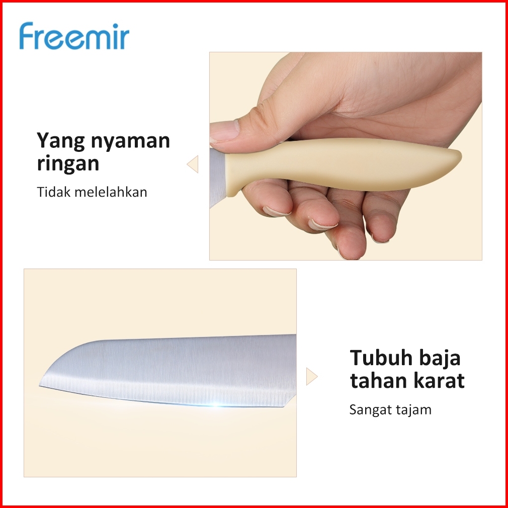 Freemir Lifestyle Pisau Set Beige Isi 5 Pcs Stainless Steel Anti Karat Dan Korosi Multifungsi Pisau Buah Dapat Digunakan