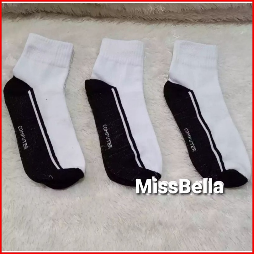 Kaos Kaki Pria Wanita Pendek Putih Telapak Hitam