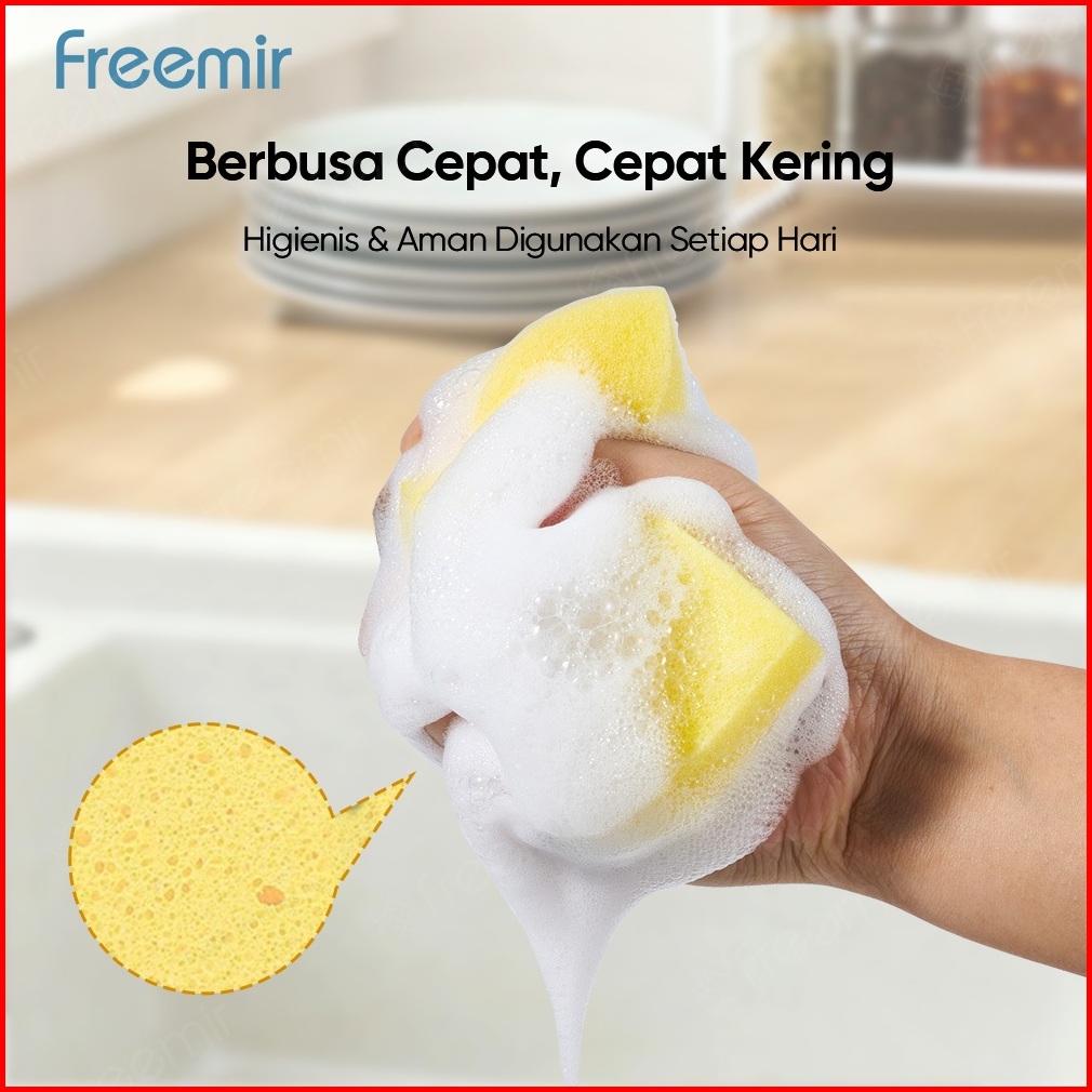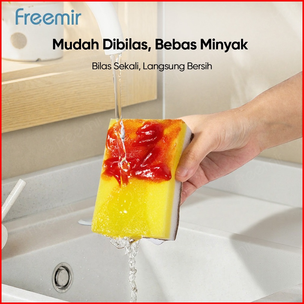 Freemir Cleaning Sponge Sabut Gosok Pembersihan Dapur Spons Pencuci Piring Kedua Sisi Dapat Digunakan Spons Pembersih Da