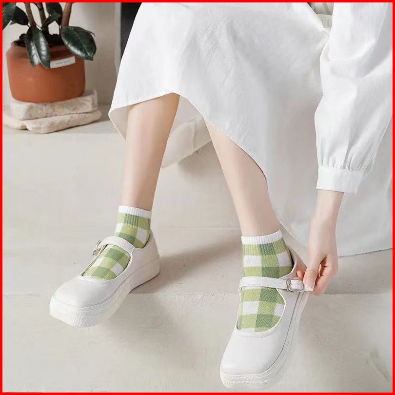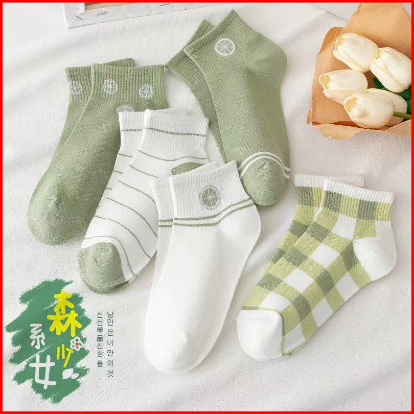 Kaos Kaki Wanita Motif Lemon Hijau Lumut Kotak Fashion Korea Women Sock Import