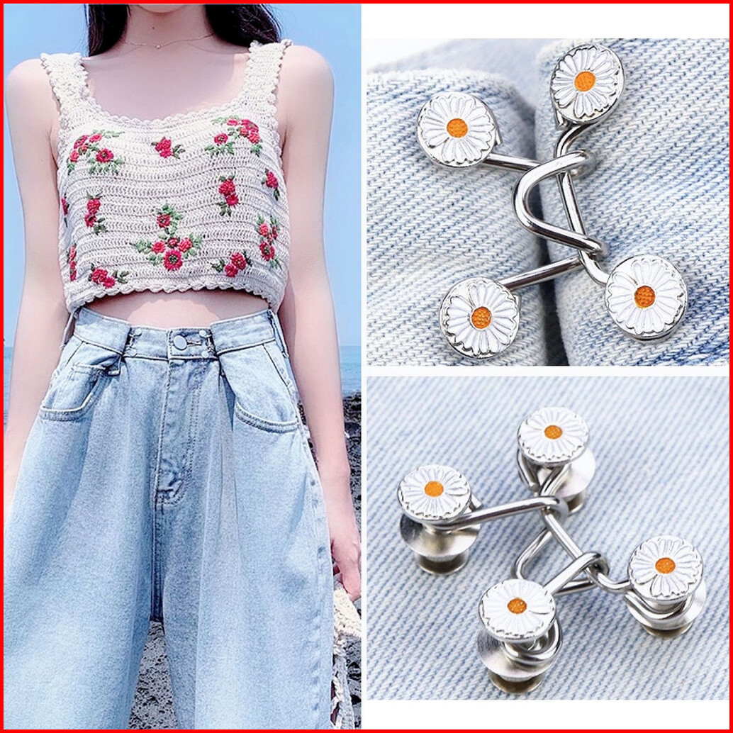 Kancing Jeans Logam Simple Adjustable Motif Bunga Daisy Kait Pengecil Lingkar Pinggang Celana Model Bisa Dilepas Detacha