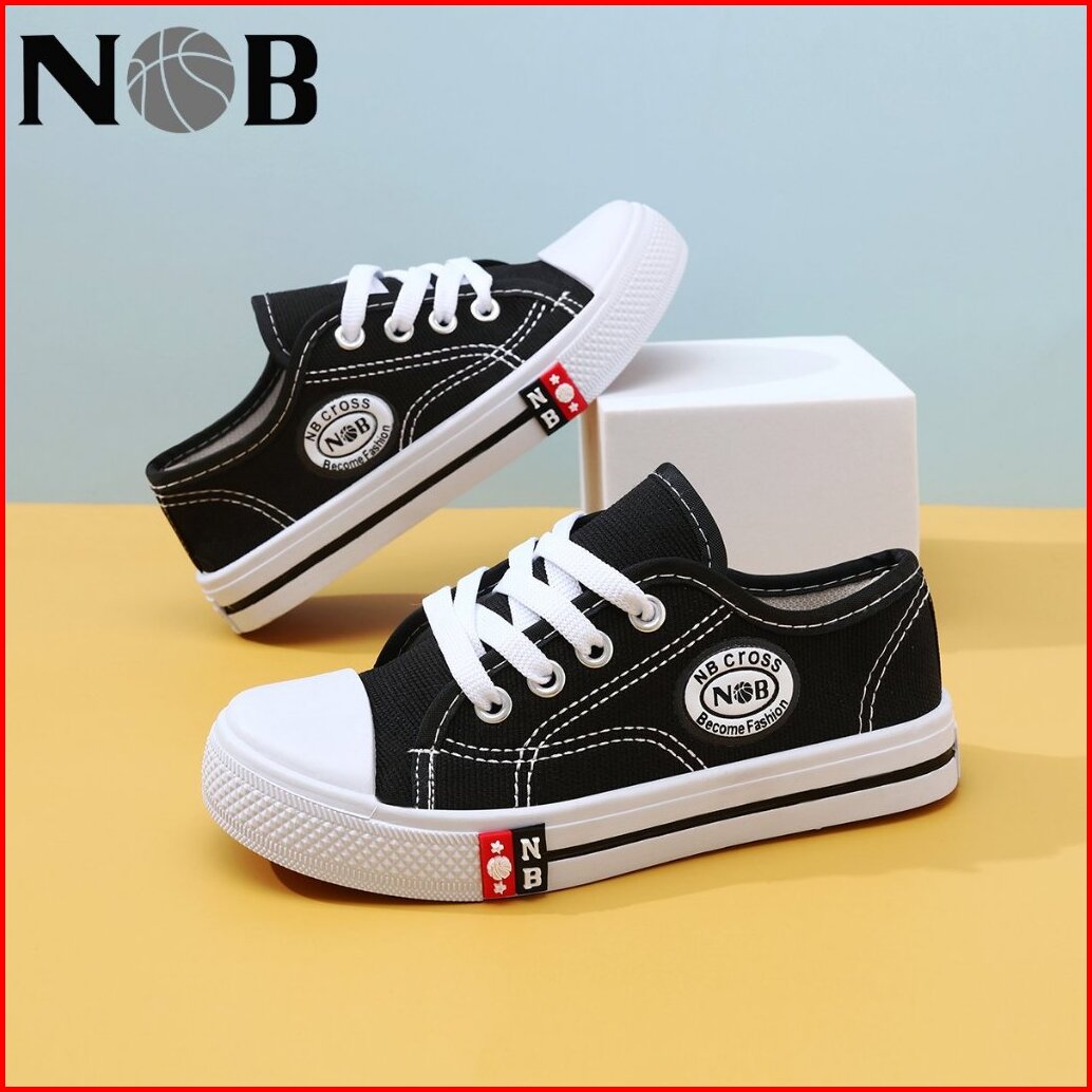 Nob Sepatu Sekolah Formal Tali Bahan Canvas Sneakers Sekolah Hitam Sd Smp Sma
