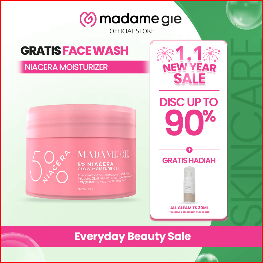 Gratis Facial Wash Madame Gie 5 Niacera Glow Moisture Gel Moisturizer - Skincare Pelembab Dan Pencerah Wajah