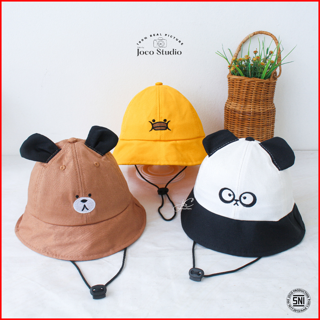 Jocoproduction - Topi Anak Fashion Topi Bucket Hat Batita Premium 2-5 Tahun Bordir Animal