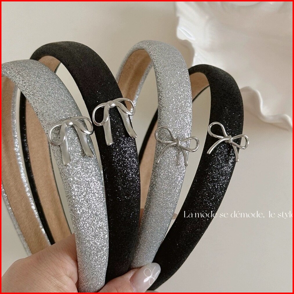 Town Shell - Party Bow Korean Head Band Bando Korea Pita Bandana Kondangan Silver Kelip