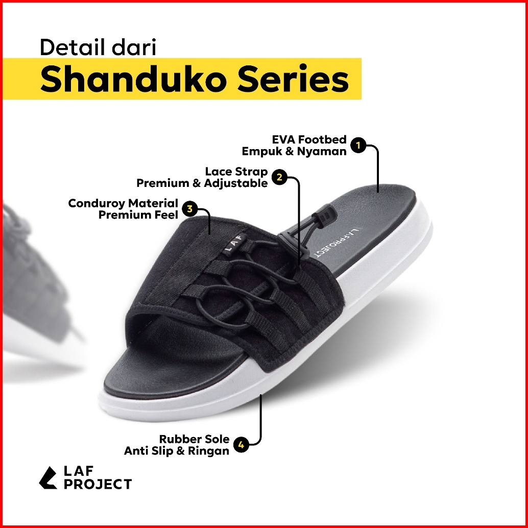 Laf Project - Sandal Slide Pria Wanita Slip On Ringan Anti Slip Selop Shanduko Hitam Putih