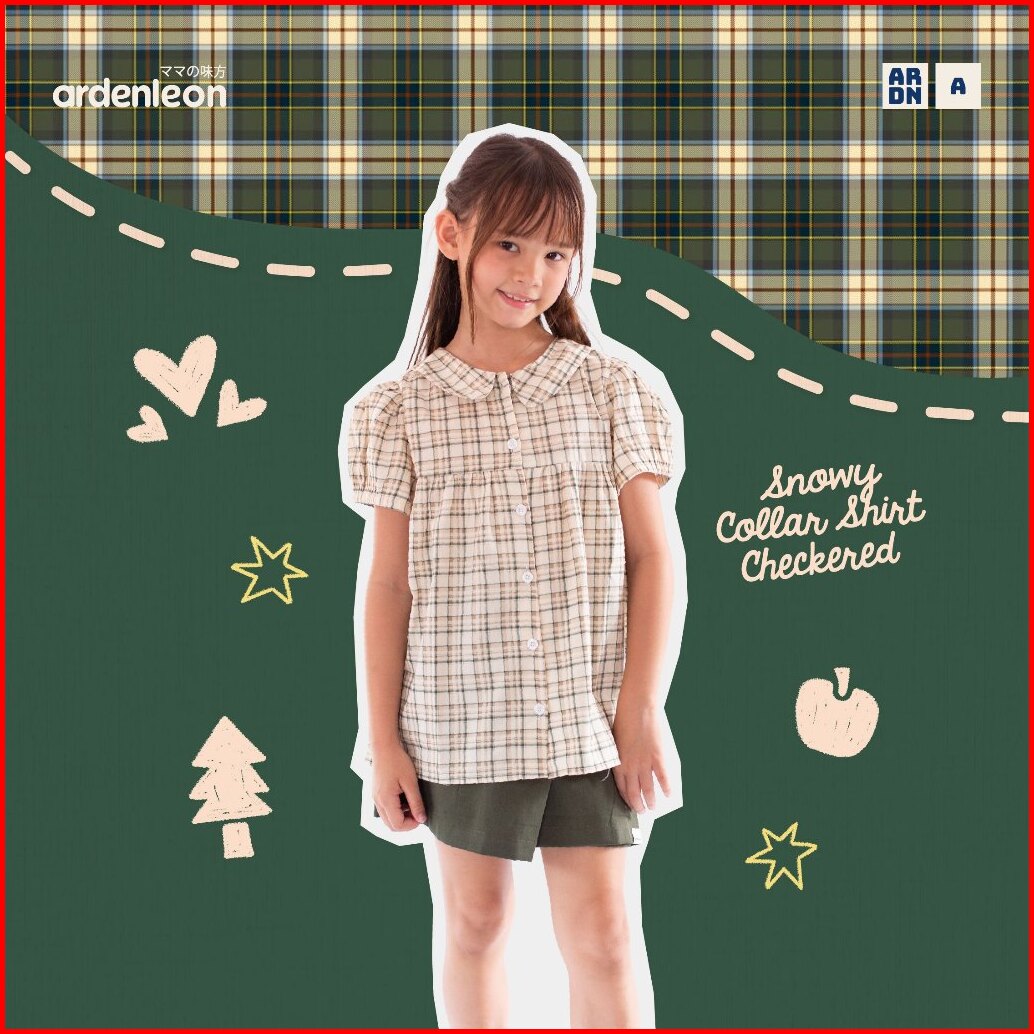 Ardenleon Atasan Perempuan Anak Snowy Collar Shirt Checkered