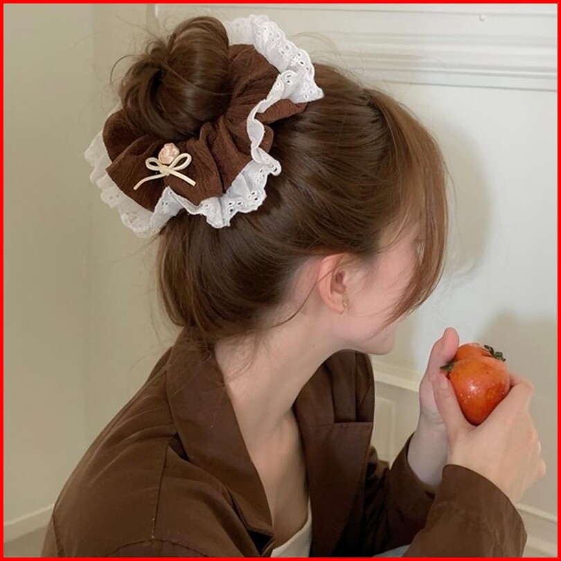 Town Shell - Choco Cream Rose Korean Scrunchy Scrunchie Ikat Rambut Korea