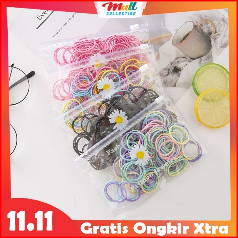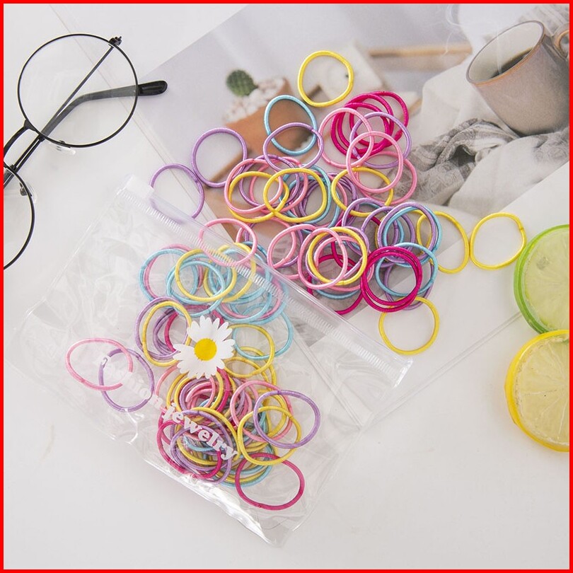 Mall - Hair Ornament Korea 100pcs Ukuran Kecil Gratis Pounch Ikat Rambut Wanita Anak Dewasa Kcr12