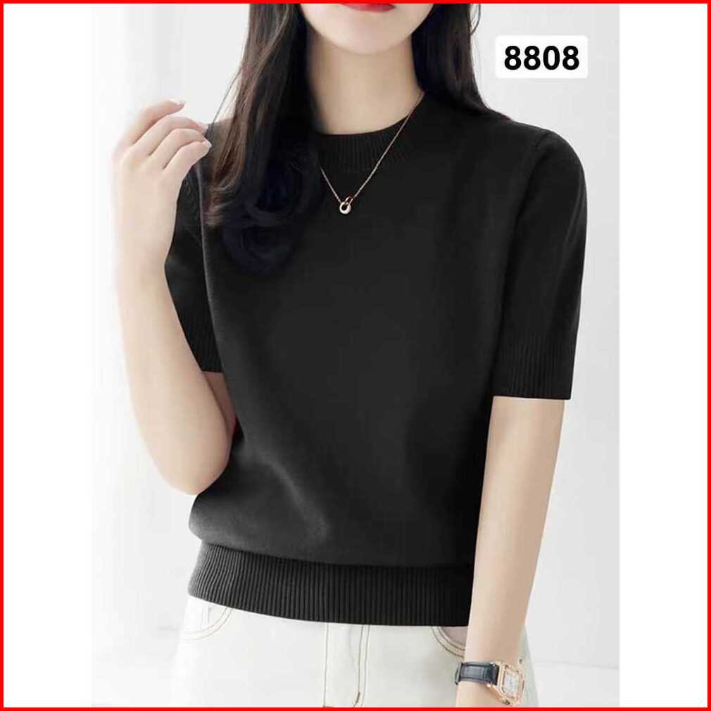 Baju Atasan Wanita Lengan Pendek Short Sleeve T-shirt Cewek Kaos Rajut Import