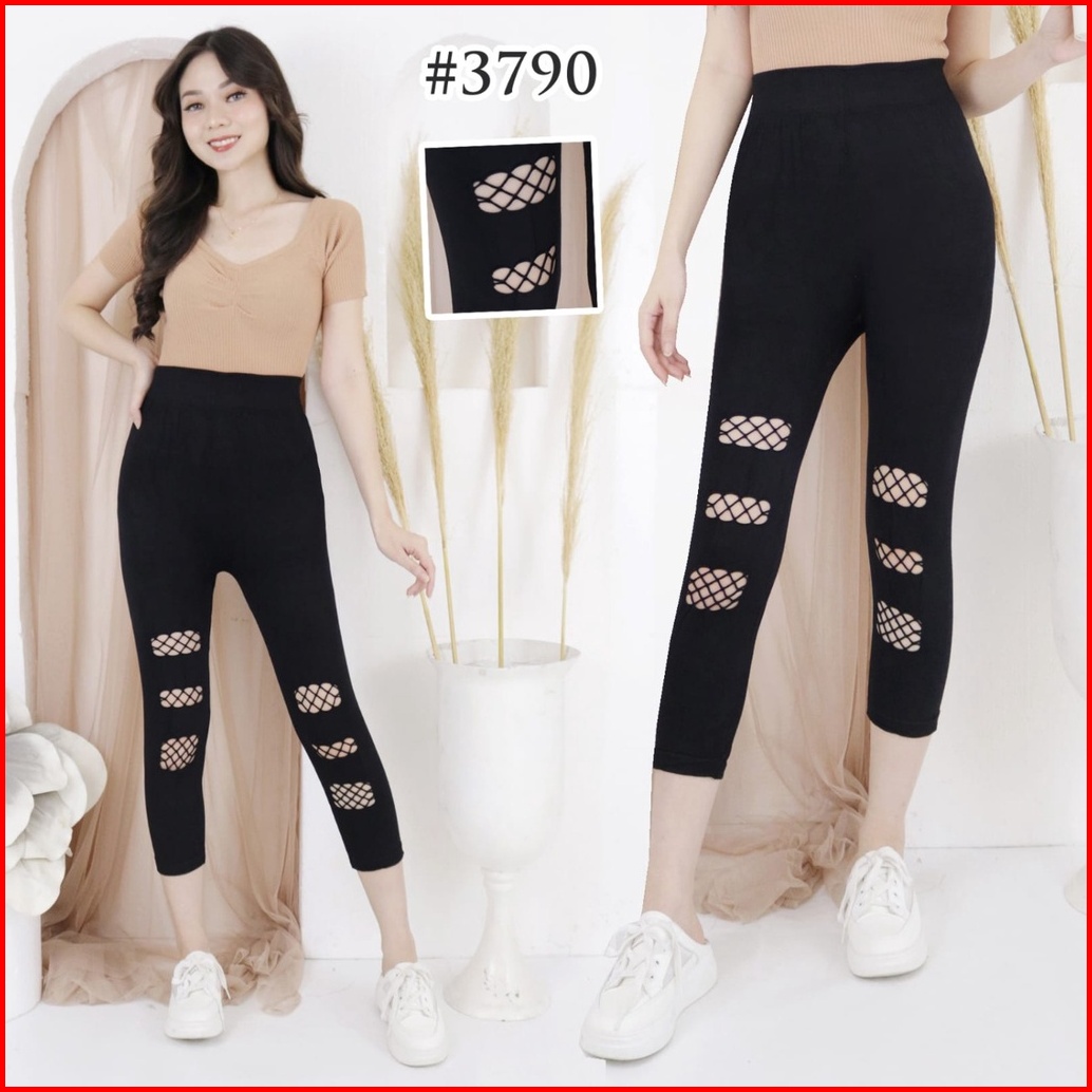 Legging Highwaist Import Jala-jala Sobek Pendek 7per8 Leging Fashion Wanita Lejing Murah
