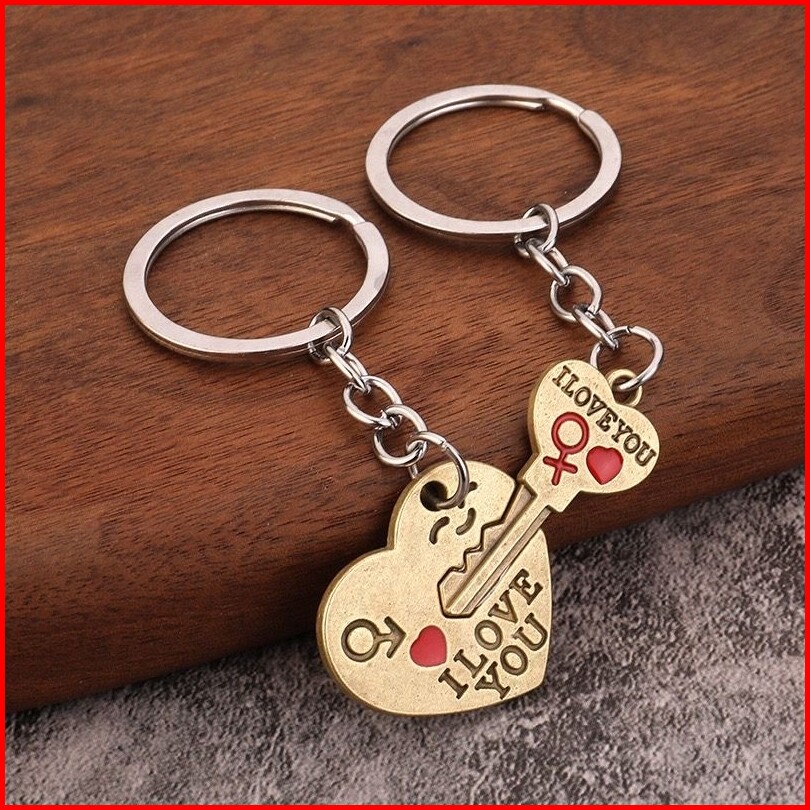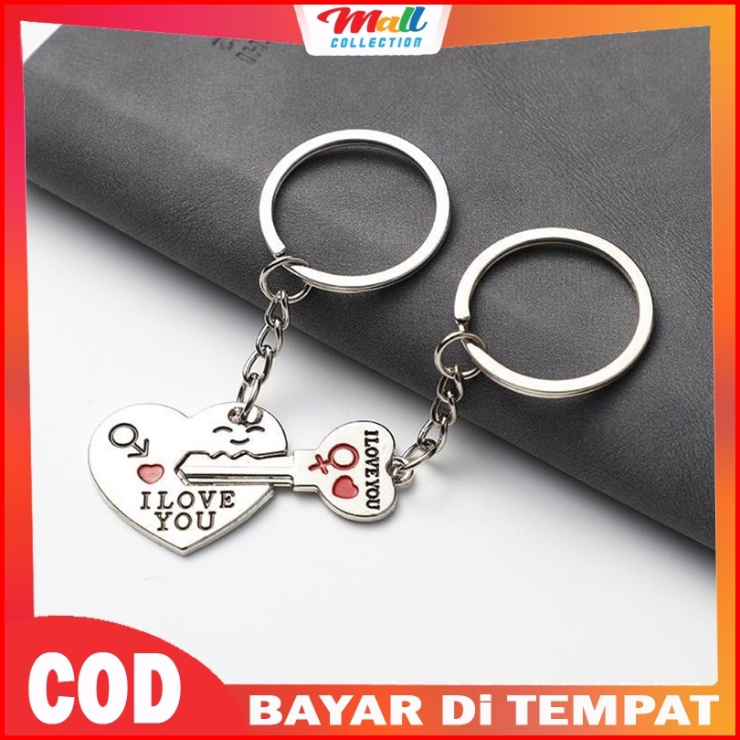 Mall Keychain Minimalus Gantungan Kunci Couple 2in1 2pcs Kunci Hati Pasangan Key16