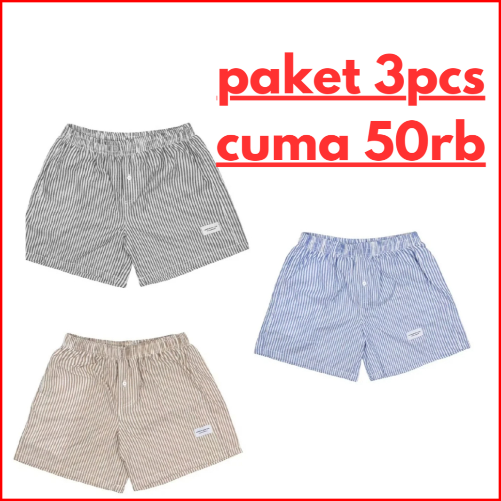 Paket 3pcs Celana Boxer Salur Benhur Pria Wanita Celana Pendek Model Kancing Saku