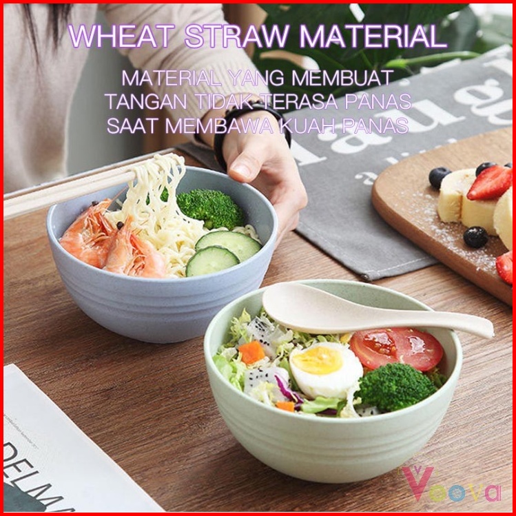 Voova 15cm Mangkok Wheat Straw Bowl Dan Piring Mangkuk Plastik Microwave Warna Warni Gandum Kokoh Bpa Free