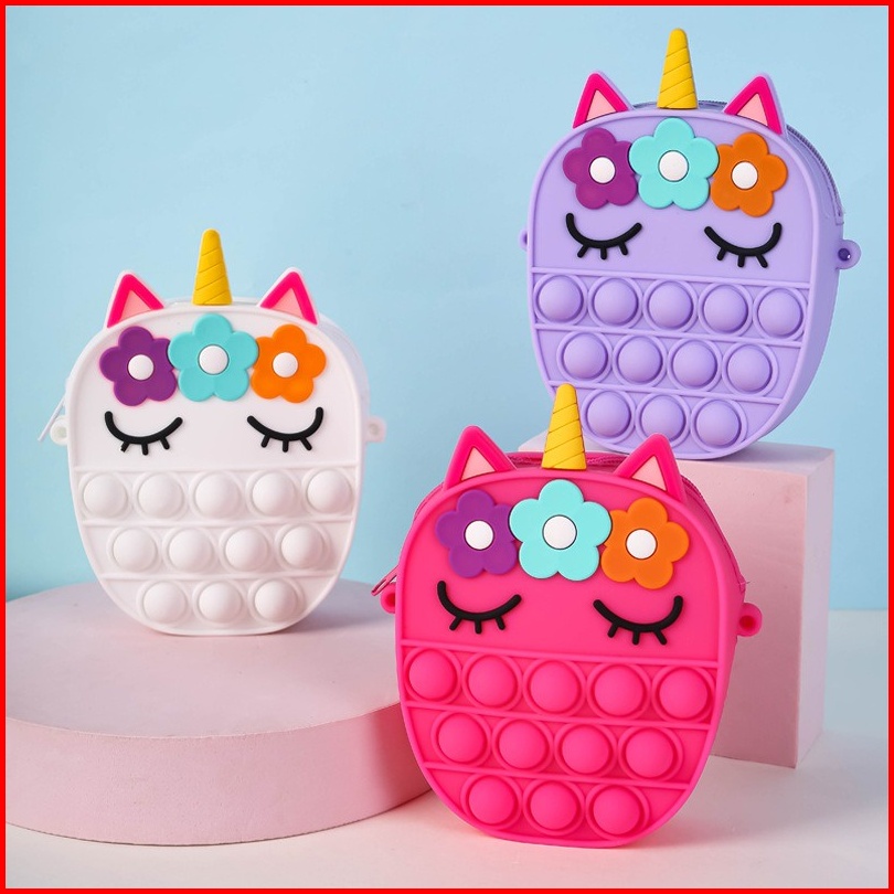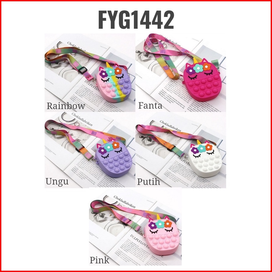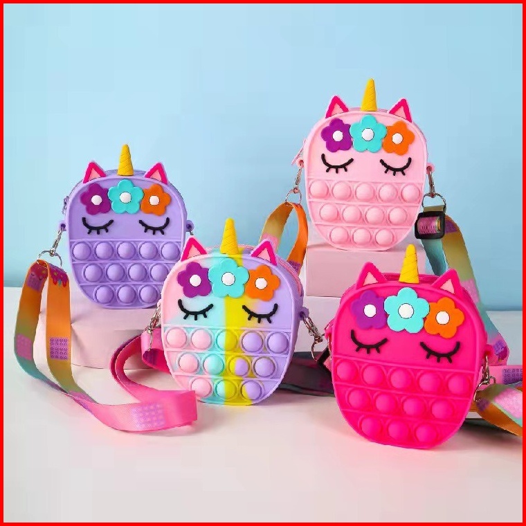 Fyg1442 Tas Selempang Pop It Mini Rubber Motif Unicorn Oval Anak Popit Rainbow