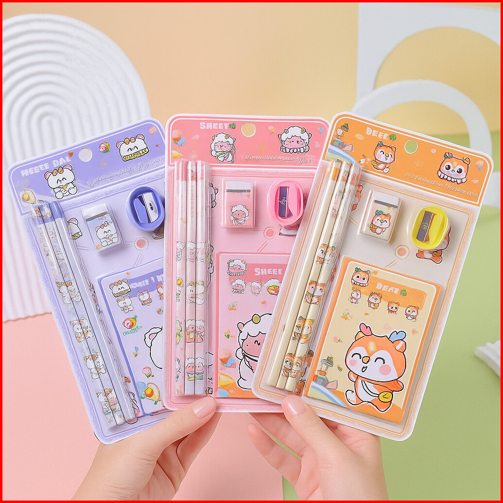 2016 Pensil Set Alat Tulis Anak 6 In 1 Stationery Set Alat Tulis Anak Sekolah Karakter Kartun